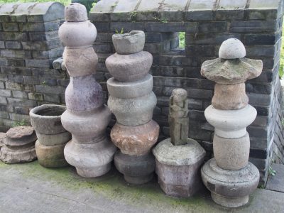 城楼左右两侧摆放着很多构造精美的石构件和石刻。