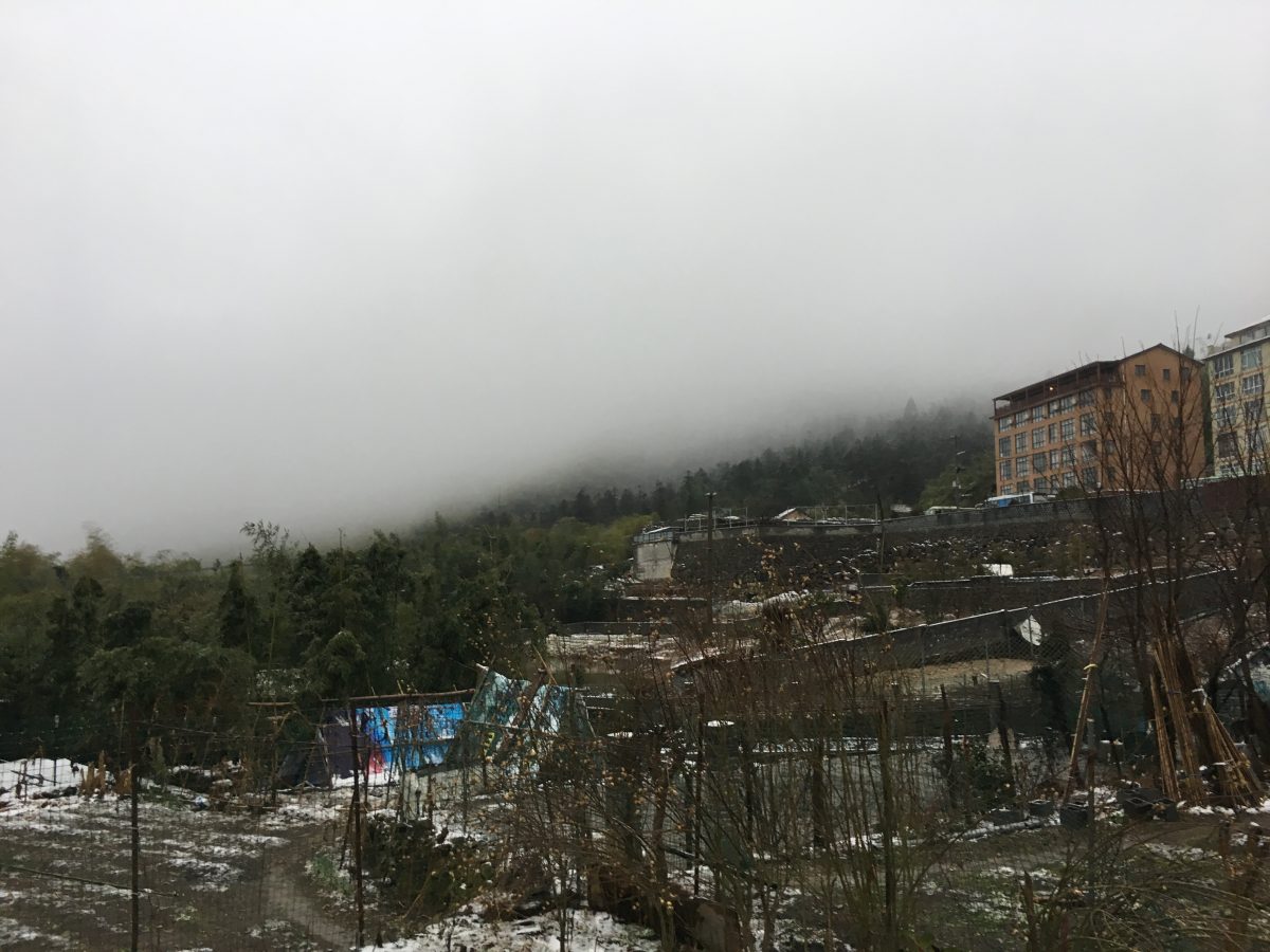 下自午到达天目山时,当地便开始下起冷冷的小雨,山上的云雾起起伏伏,眼前的山脉时隐时现,就这样一直持续到天黑,待到达当晚住宿的农家乐时雨还在继续,山间的气温很低,路面开始结了冰,到住宿的农家乐要开上几公里的山路,由于路面湿滑又有些结冰,只能缓慢