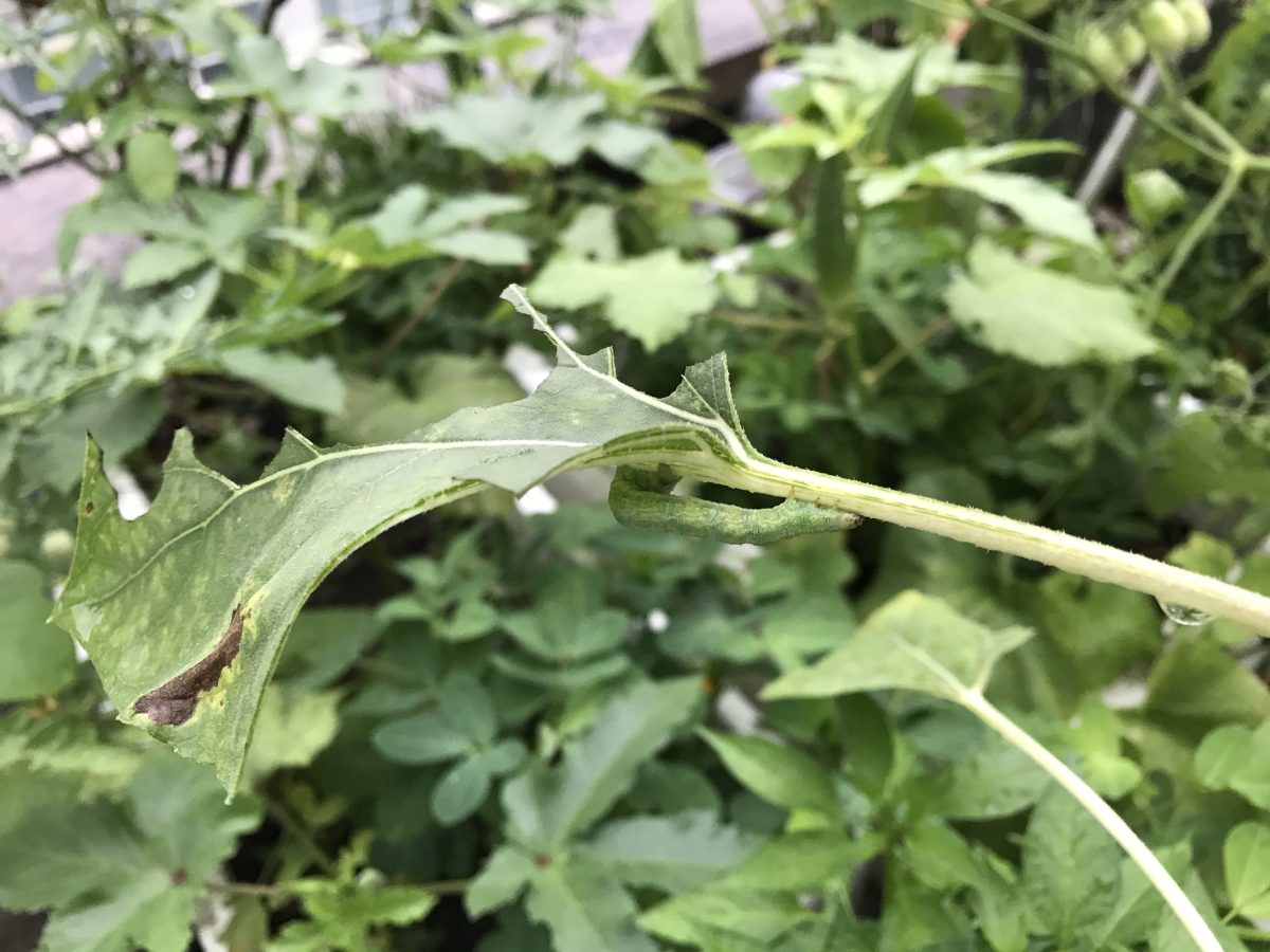 可恶的害虫一夜之间就啃了两片向日葵叶子。